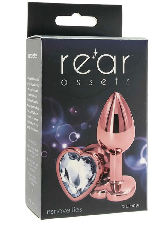Small Aluminum Plug with Clear Heart Gem in Rose Gold